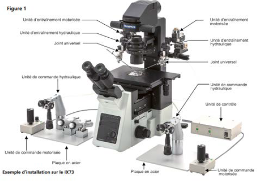 Flexible et simple à intégrer, la solution Narishige est compatible avec une large variété de microscopes EVIDENT/OLYMPUS, qu’ils soient manuels, semi‑motorisés ou motorisés, anciens ou récents.